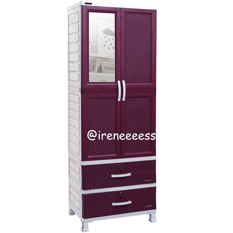 Lemari plastik napolly / lemari pakaian plastik / lemari plastik pakaian / lemari plastik susun. Dilengkapi dengan rak gantung pada bagian atas, rak bagian bawah dapat digunakan sebagai tempat penyimpanan pakaian yang dilipat. Sangat cocok bagi anda yang menyukai tema natural dan mengutamakan efisiensi ruangan kamar anda. Lemari merk napolly 5 susun model pintu penutup seperti laci ini merupakan model lama yang sederhana yang dulu paling populer. Lemari pakaian plastik 2 pintu kapasitas medium dengan motif anyaman, gantungan baju dan cermin rias.